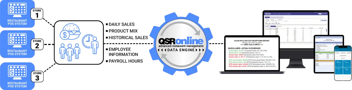Profit, food cost, and labor visibility across every location.Built for multi-location quick service restaurants running POS-driven operations.
